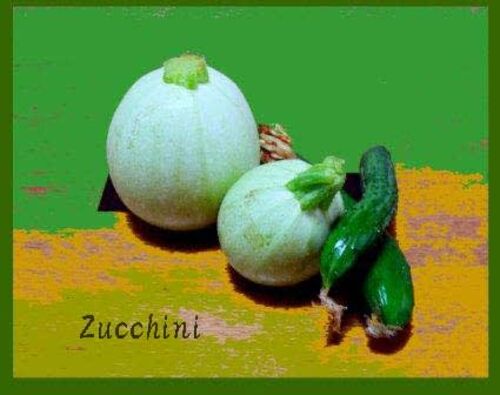 『Zucchini』 の丸君 丸ズッキーニを見つけたよ。 長いのは知っているけど、こんなに丸いものは、初めてさ。 楽しいな。 さあて、何を作ろうかな? おや!? 袋のレッテルには『ズッキーニ・セット』ってあるんだけど・・・。 可愛いキュウリが二本。 「ウ…
