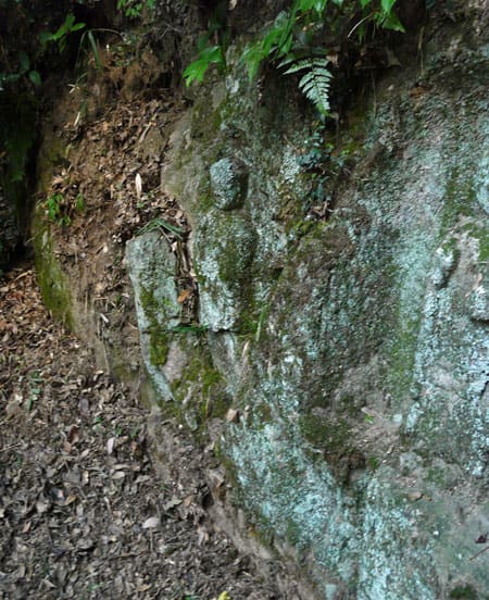 磨崖石仏群は金勝寺金堂の西側、巨岩の露頭面にあります。