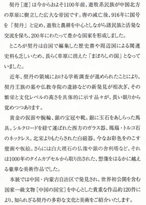 まなざしを熱くすれば心が躍り、果てなき美の世界に胸は高鳴る。契丹の文化には、1000年の時を超えた深い魅力があるといえましょう。
